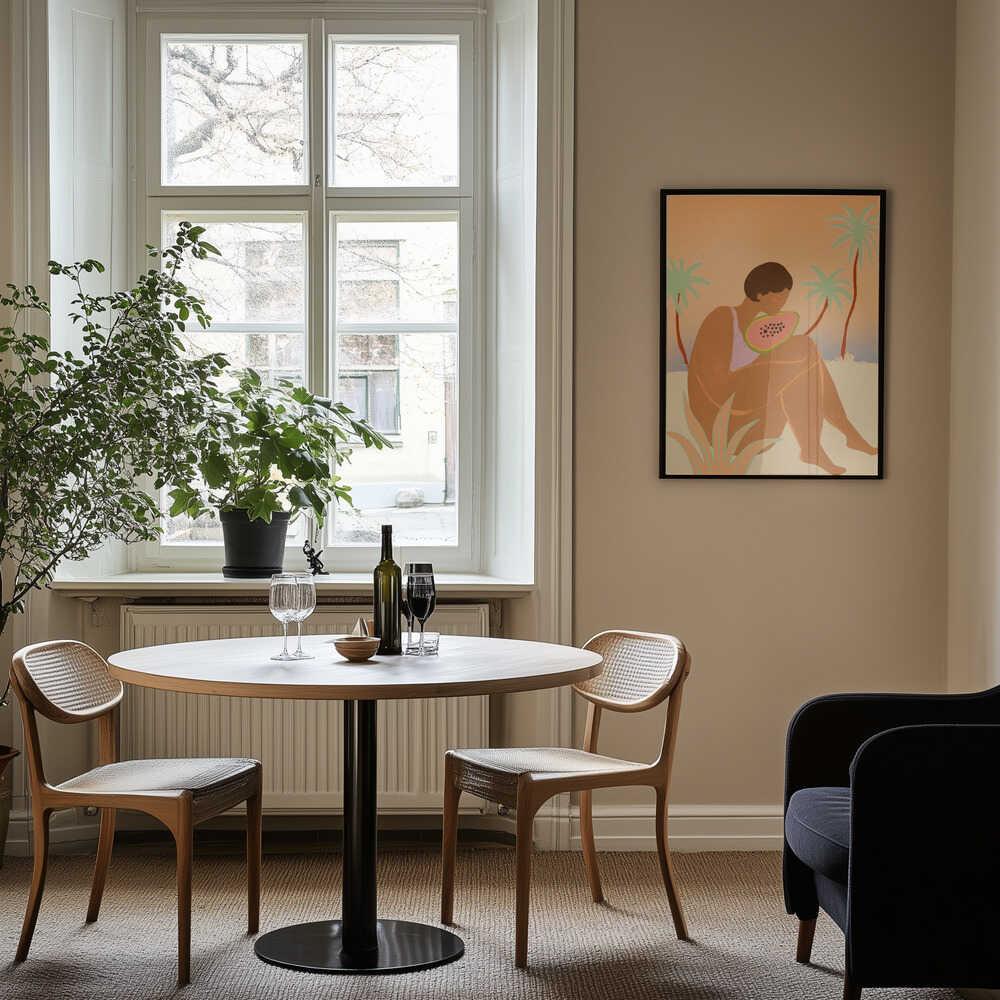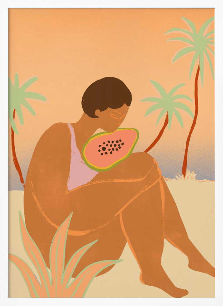 Celebrate summer vibrancy with this playful art print featuring a radiant woman embracing the season's tropical spirit. The striking composition captures a carefree moment—a figure in summery swimwear cradling a vibrant papaya, evoking feelings of warmth, abundance, and effortless joy. Perfect for brightening any space, this piece brings a burst of colour and personality to your walls. Whether you're drawn to bold, contemporary art or seeking a conversation starter for your home, this print delivers both style and character. Transform your décor with artwork that radiates positivity and summer energy.