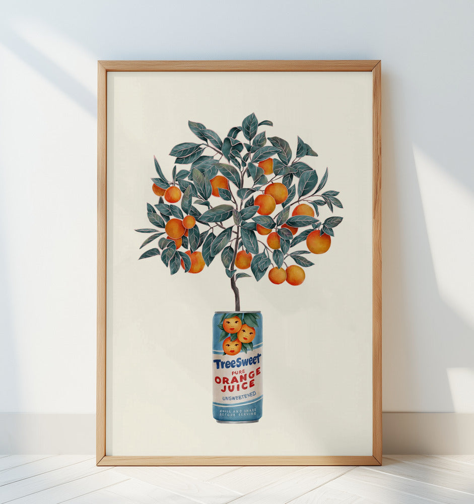 Transform any room into a vibrant oasis with the Orange Tree in Juice Can Art Print. This eye-catching print features an orange tree growing out of an orange juice tin, adding a touch of whimsy to any space. Experience the joy and energy of nature with this colourful and unique piece!