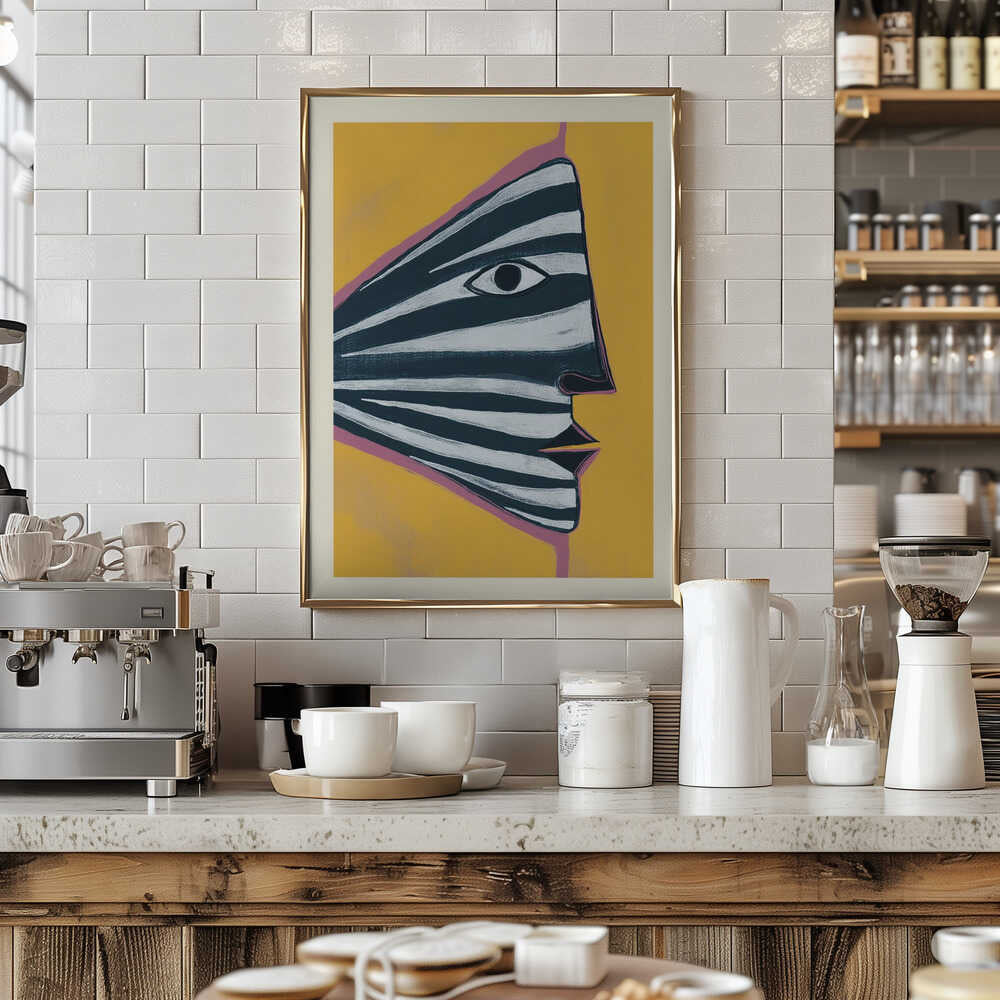 Elevate your space with this striking Abstract Profile Art Print, where bold geometric lines create a captivating face in contrasting blue and white stripes against a vibrant yellow background. Perfect for modern interiors, this contemporary piece brings artistic flair and visual interest to any room. The dynamic colour palette and minimalist design make it an ideal statement piece for galleries, offices, or creative spaces. Transform your walls into a showcase of modern art that sparks conversation and inspires imagination.