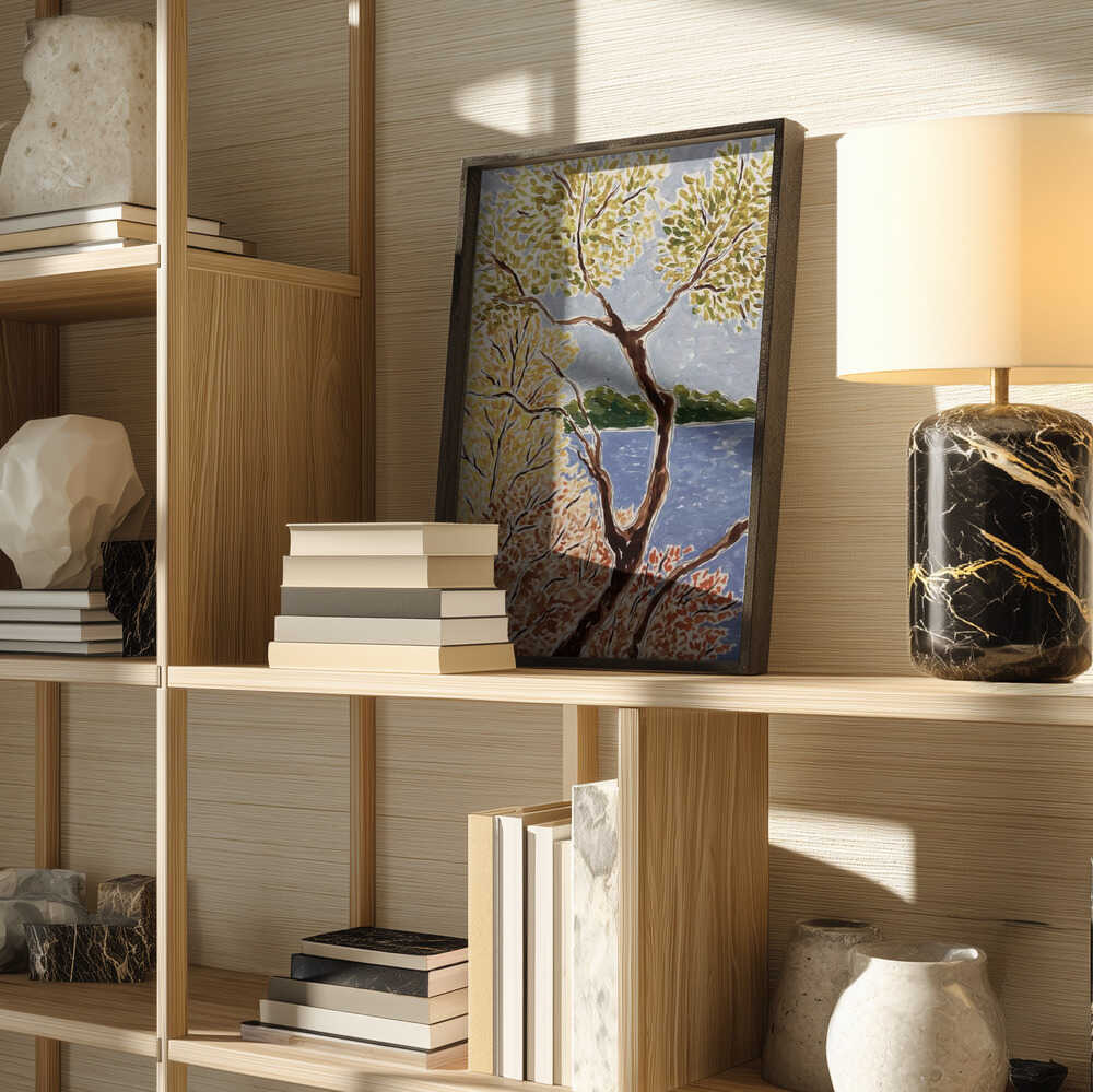 Capture the serene beauty of fall with the Autumn By The Lake PFY Art Print. This striking artwork brings a warm, peaceful vibe to any room, showcasing vibrant autumn trees reflected on calm lake waters. Perfect for creating a cozy atmosphere, it effortlessly enhances your living space with seasonal charm and natural elegance. Elevate your décor with a piece that invites relaxation and appreciation of nature’s tranquil moments.