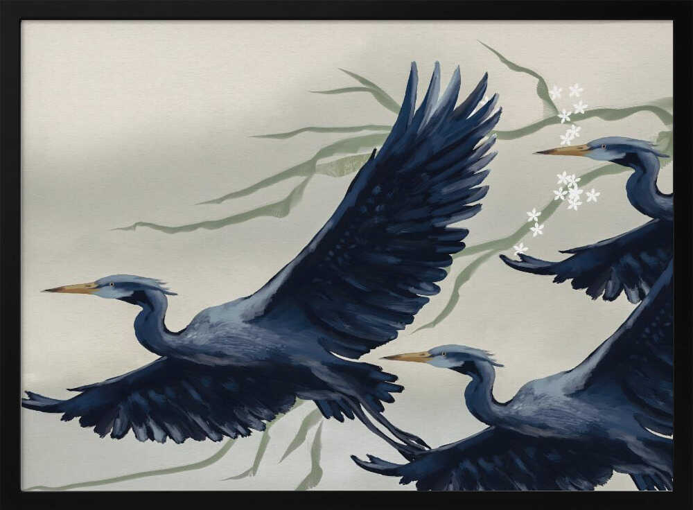 Discover the serene beauty of Japanese-inspired artistry with this exquisite Flying Herons print. Rendered in striking dark blue tones, these graceful birds embody the minimalist elegance and contemplative spirit of traditional Japanese art. This piece brings timeless sophistication to your space, evoking tranquility and natural harmony. The refined colour palette and flowing composition create a focal point that transforms any room into a sanctuary of calm. Ideal for those who appreciate Eastern aesthetics and wildlife imagery, this print infuses your home with cultural depth and artistic refinement. Invest in wall art that speaks to both the eye and the soul.