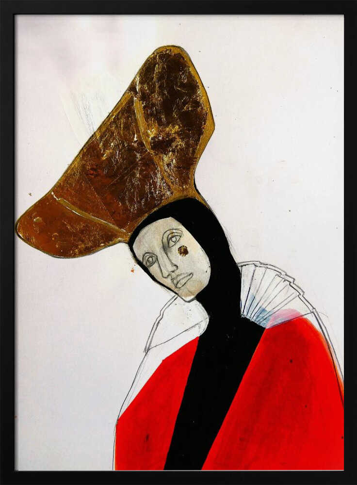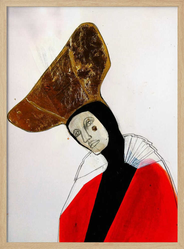 Bring a bold statement to your space with the Joker in Gold PFY Art Print. Featuring a striking joker wearing a shimmering gold hat and vibrant red dress, this artwork adds a touch of drama and sophistication to any room. Perfect for art lovers seeking a unique and captivating piece that sparks conversation. Elevate your dรฉcor with this eye-catching print that blends vivid color and intriguing design.