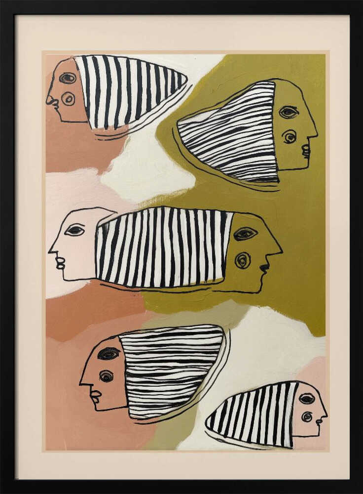 Discover the captivating allure of geometric artistry with this striking Silent Travellers print. Bold geometric faces emerge in mesmerising shades of green and soft pink, creating a contemporary visual narrative that transforms any space. The harmonious colour palette brings warmth and sophistication to your walls, while the abstract design sparks conversation and imagination. Perfect for modern interiors, this art print combines artistic expression with timeless appeal, inviting viewers into a world of silent contemplation and creative wonder.