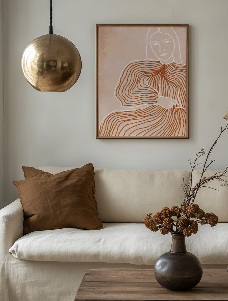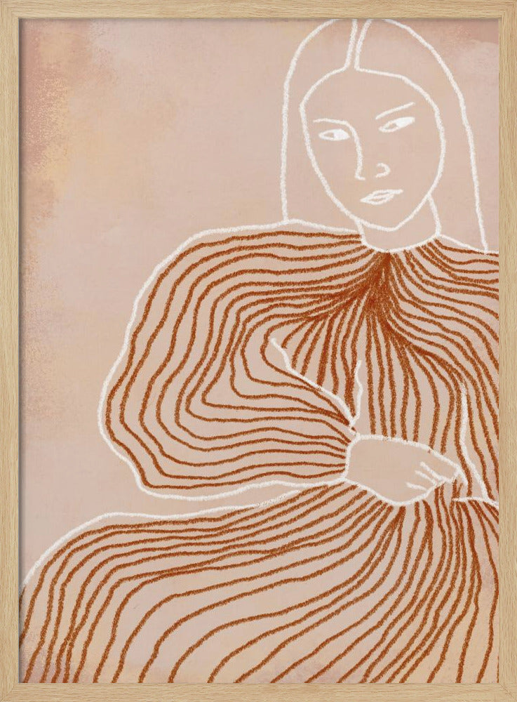 Elevate your space with our "Mademoiselleamélie PFY Art Print" featuring an elegant line drawing of a lady adorned in striking stripes. The warm, rusty color palette adds a sophisticated vintage charm to any room. This distinctive piece creates an instant focal point while complementing both modern and classic décor styles. Perfect for art lovers seeking unique statement pieces with timeless appeal.