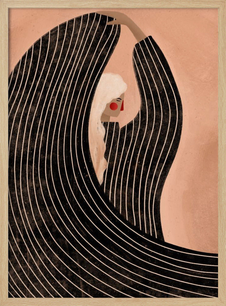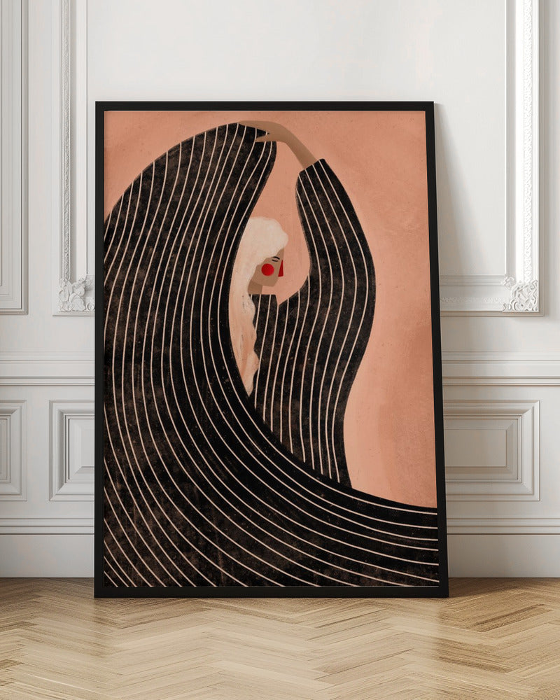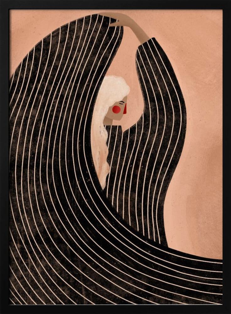 Captivate your space with this striking PFY Art Print featuring a woman playfully interacting with her black striped dress. The dynamic composition creates visual movement while the contrast between the figure and her distinctive attire adds sophisticated drama to any room. This eye-catching piece will become an instant conversation starter and elevate your interior design.