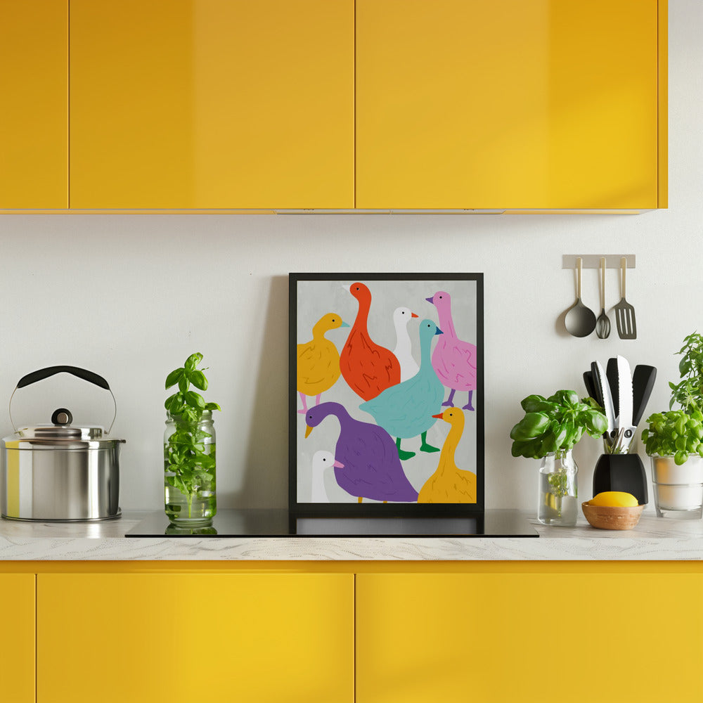 Discover the vibrant charm of the Duck Around & Find Out PFY Art Print, featuring a lively collection of bright, colourful ducks. This eye-catching piece adds a playful splash of color to any space, perfect for brightening up your home or office. Its cheerful design invites curiosity and joy, making it a delightful focal point that sparks conversation and creativity.